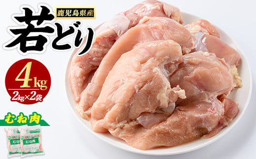 若どり ムネ肉 (計4kg・2kg×2袋) 鹿児島県産 若鶏 唐揚げ や 炭火焼 焼き鳥 サラダチキン 等 あらゆる おかず に最適 ふるさと納税 鶏肉 むね 国産鶏 鶏むね 鶏むね肉 【まつぼっくり】matu-1446R7a
