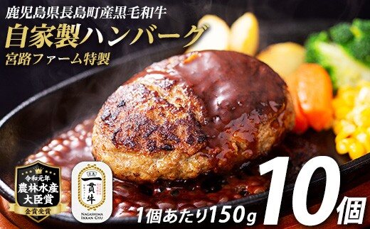 鹿児島県産合挽き肉使用 自家製ハンバーグ計10個(1個150g)【宮路ファーム】f-miyaji-1209
