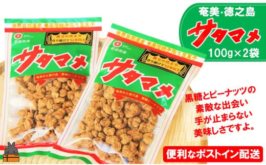 2302 黒糖×ピーナッツ ついつい手が止まらない美味しさ!奄美・徳之島のサタマメ200g(100g×2袋)【ポストイン配送】 ( さたまめ 豆菓子 和菓子 黒砂糖 黒糖 ピーナッツ 伝統 奄美 徳之島 鹿児島 お茶請け 世界自然遺産 安田製菓 )
