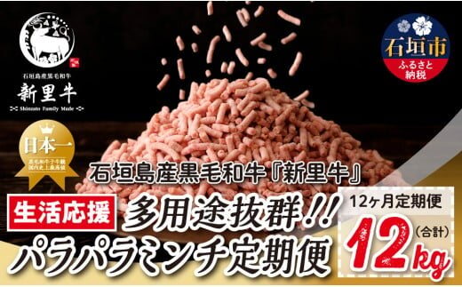 石垣島産 黒毛和牛 新里牛 多用途抜群!パラパラミンチ 定期便全12回(毎月1kg×12回)合計12kg SZ-47