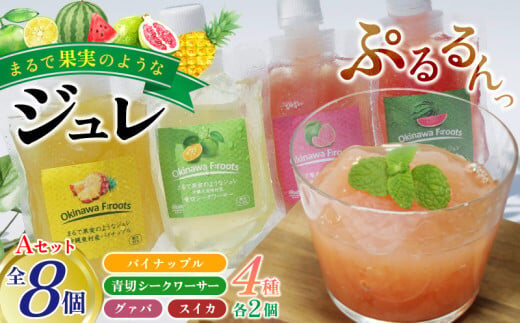 全8個 ・青切シークワーサージュレ130g 2個 ・パイナップルジュレ130g 2個 ・グアバジュレ130g 2個 ・スイカ130g 2個 |